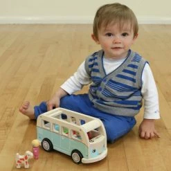 This awesome retro-cool camper van comes complete with a wooden peg family and their pet dog. Children can remove the roof for easy access, and the pieces are chunky, perfect for small hands. When it’s time to get moving, the wooden pegs can be matched by colour to their correct seats which encourages colour recognition and hand to eye co-ordination. Colin Camper Van is made from rubber wood and birch ply, and it is sturdy and durable.