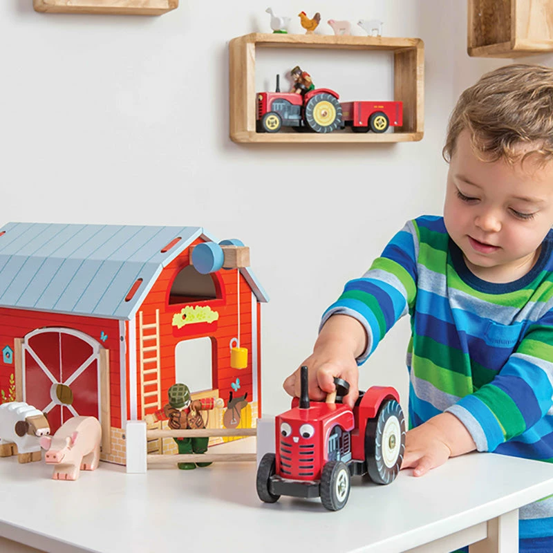 Kids will love this fantastic tractor from Le Toy Van. The tractor (31 x 12 x 15cm) is painted in shiny red with black wheels. What a perfect addition to any farm. Great role play fun.
