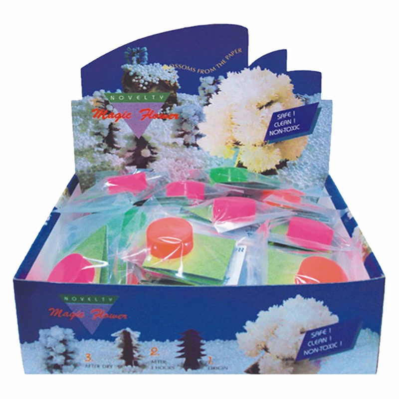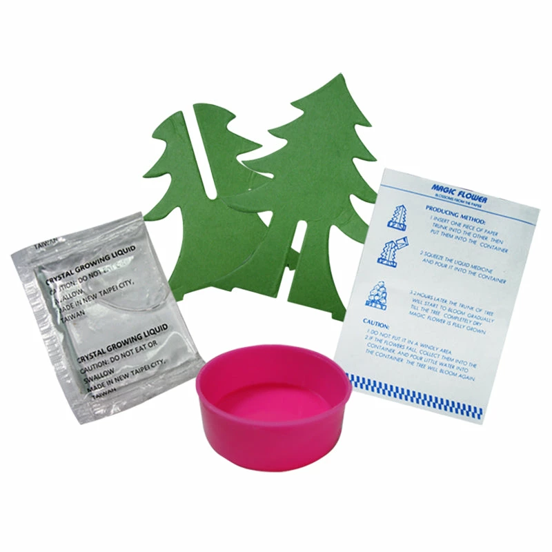 It’s magic!! Watch your magic tree grow as it blossoms from the paper! The set consist of a sachet of crystal solution and a cardboard tree. The tree soaks up the liquid, then as it evaporates crystals are deposited all over the tree.