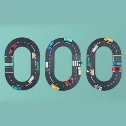 Waytoplay’s Straight Extension Kit increases the construction opportunities of any Waytoplay set. The set includes four straight road parts, printed with stripes, a pedestrian crossing, shark teeth and parking spaces! The reverse side of each piece has white marking stripes. Put these extension parts between your waytoplay roads for even more fun.